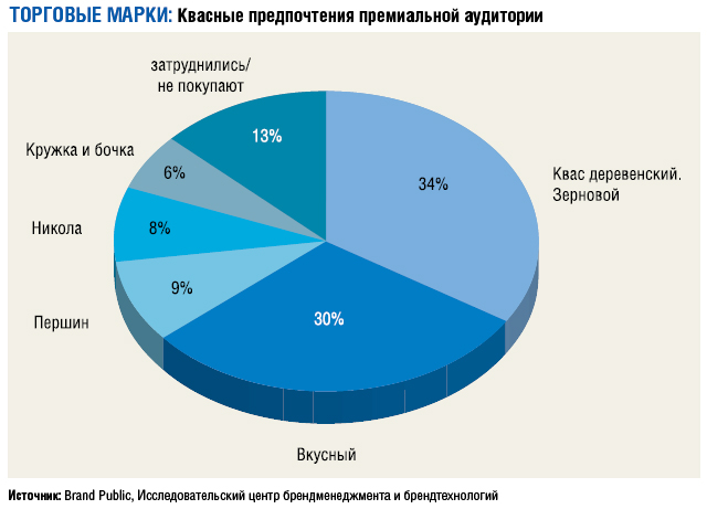 Хотя для премиальной аудитории квас и не является лидером среди российских напитков, позволяющих утолить жажду, его выбирает значительное число потребителей. Как показало эксклюзивное исследование компаний Brand Public и «Исследовательского центра брендменеджмента и брендтехнологий Николаса Коро», главным критерием выбора квасного продукта остается срок его годности.