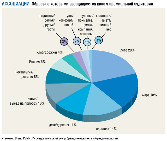 Наверное, именно поэтому в абсолютные лидеры и выбился единственный квас в стеклянных бутылках «0» со сроком хранения 3 дня от производителя, знакомого покупателям по свежевыжатым сокам. А устойчивое второе место у кваса под названием «Вкусный», где даже под лупой не найдешь ни грамма химии, консервантов, закрепителей, подсластителей и прочей естественной атрибутики массмаркета. Иные марки примерно близко вошли в группу упоминаемых и изредка покупаемых (но покупаемых!) и это премиально выглядящий «Першин» (что ни говори, а бренд дизайн – первостатейная вещь) от «Эжен Божоле Вайн», далее патриотичный «Никола», давший в свое время жару колопроизводителям, и наконец и сам продукт от «Кока Колы» – «Кружка и Бочка».